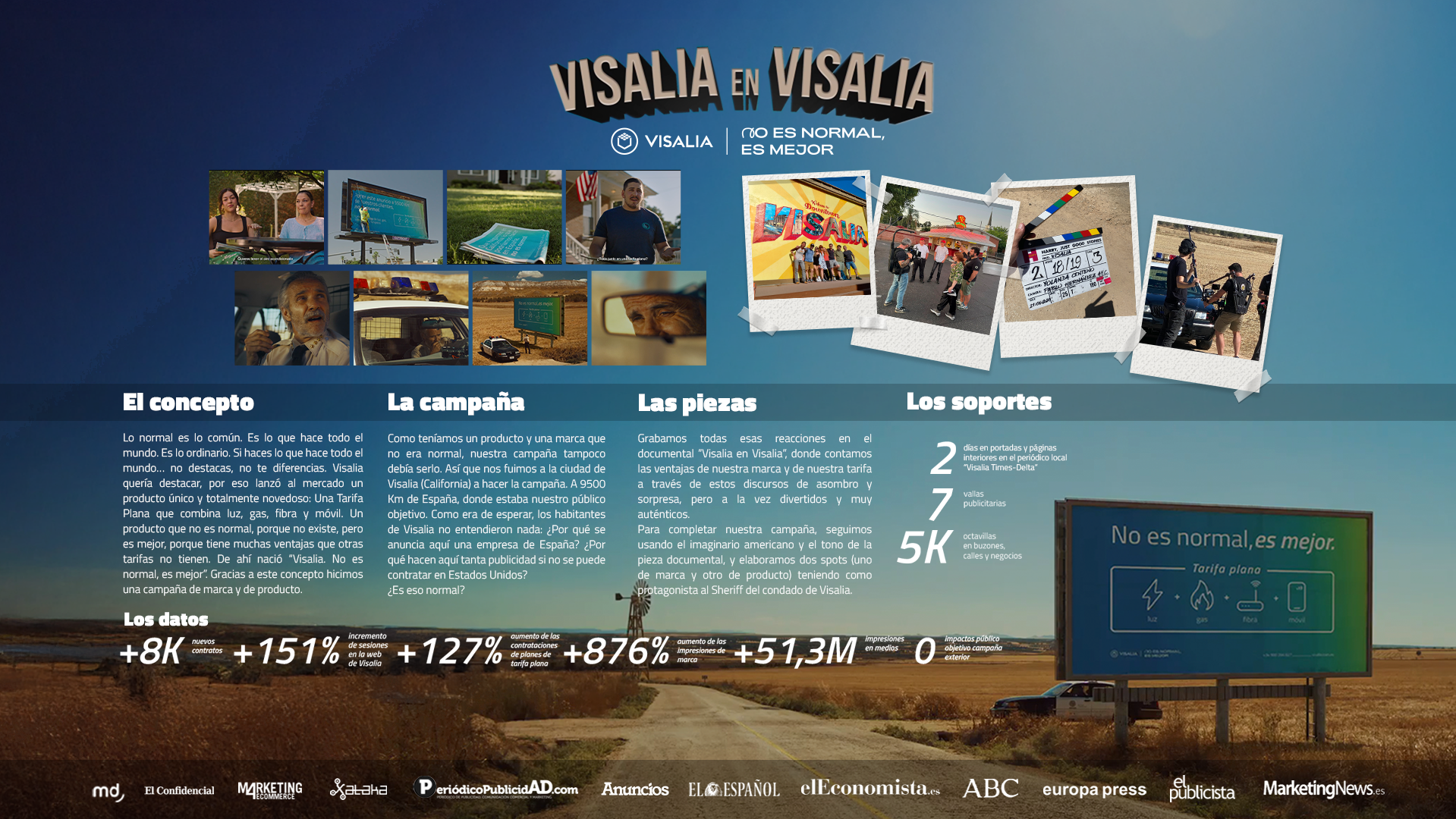 Como la marca y el producto no eran normales, la campaña tampoco debía serlo. Por eso viajamos a Visalia (California) y pusimos allí nuestra publicidad (vallas publicitarias, páginas en periódicos y octavillas). Grabamos las reacciones de sus habitantes y realizamos 2 spots (uno de marca y otro de producto) y una pieza documental.